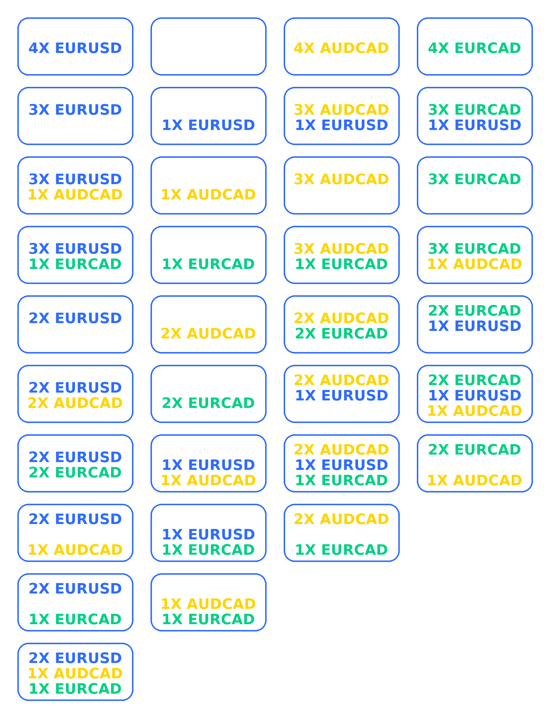 Una de las ventajas que ofrece nuestro asesor experto frente a otros, es la posibilidad de poder abrir hasta 4 gráficos de un mismo par, siempre hablando del EURUSD, EURCAD, GBPUSD y AUDCAD. Tenemos opciones para todo tipo de inversor.